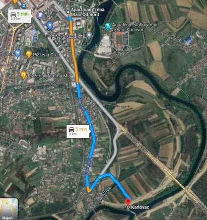 It is just a 5 minute drive from the apartment Treba Malo Odmorit or about 35 minutes walking (which is really not that much).